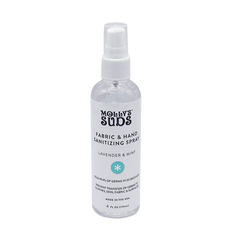 Molly’s Suds Fabric and Hand Sanitizer does not contain: Synthetic Fragrances, Formaldehyde & 1,4-Dioxane, Optical Brighteners, Synthetic Nonylphenol Ethoxylates, Phosphates, Chlorine, Sodium Laureth Sulfate (SLES), Phthalates, Parabens, Methylisothiazolinone, Cocamide DEA