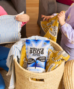 Molly’s Suds Super Powder does not contain: Synthetic Fragrances, Formaldehyde & 1,4-Dioxane, Optical Brighteners, Synthetic Nonylphenol Ethoxylates, Phosphates, Chlorine, Sodium Laureth Sulfate (SLES), Phthalates, Parabens, Methylisothiazolinone, Cocamide DEA